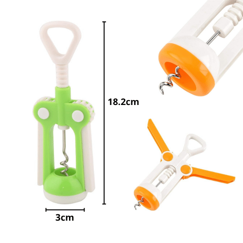 ¿Quieres disfrutar de una copa de vino sin batallar con los corchos? Con nuestro abridor de vino de plástico, abrir tus botellas favoritas será más fácil, rápido y divertido. Su diseño ergonómico y colorido no solo lo hace funcional, sino también un accesorio moderno en tu cocina o bar.