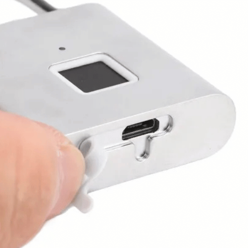 • Capacidad: Hasta 10 huellas dactilares • Material: Aleación de zinc + acero inoxidable • Batería: 3.7V recargable por USB • Tiempo de carga: 1.5 horas • Uso por carga: Hasta 3000 desbloqueos • Peso: 90g aprox. • Resistencia: A prueba de polvo, golpes y uso diario