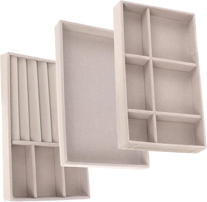 Usa las bandejas juntas o por separado. Perfectas para tocadores, cajones o vitrinas de exhibición.