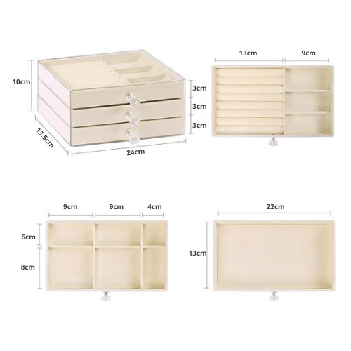 ¿Tienes tus anillos, aretes y pulseras desordenados o guardados en cualquier lugar? Con nuestro Set de 3 Bandejas de Joyería, mantén tus accesorios perfectamente organizados, visibles y siempre al alcance.