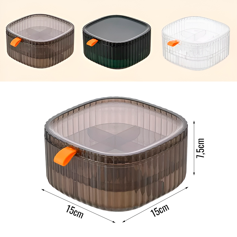 • Tamaño: El organizador tiene un tamaño de 15 x 15 x 7,5 cm, lo que lo hace ideal para guardar joyas pequeñas.