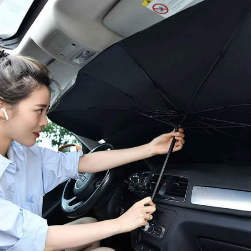 Con la Sombrilla para Coches estilo paraguas, dile adiós al calor sofocante y a los daños por exposición solar. Su diseño innovador se despliega como un paraguas tradicional, cubriendo el parabrisas de forma rápida y efectiva.